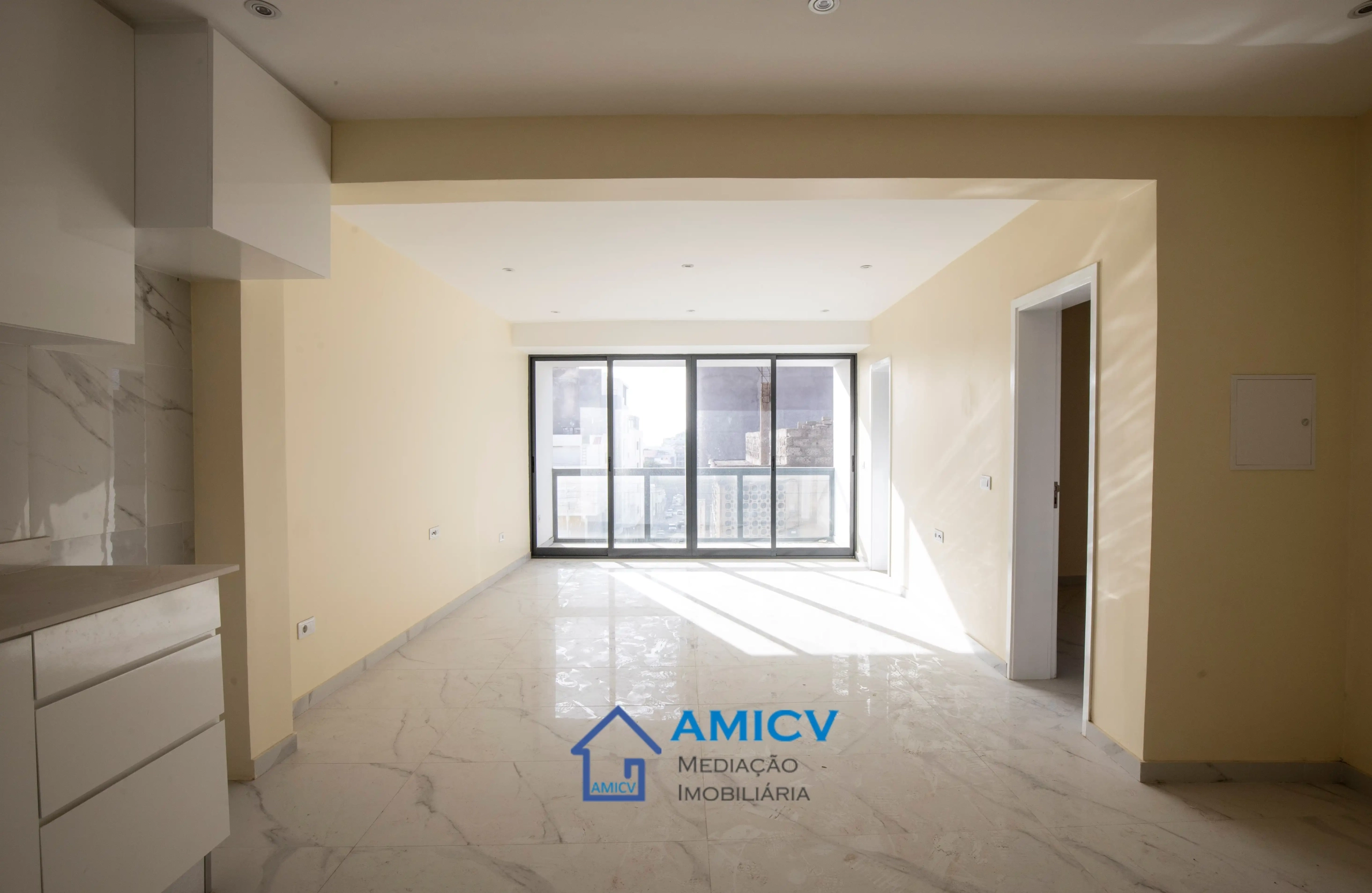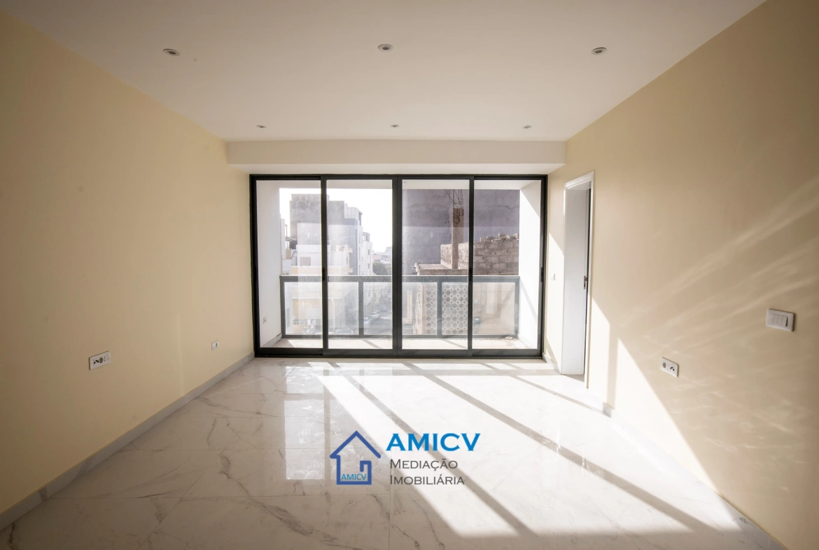 AMICV, Agência Imobiliária em Cabo Verde, apresenta em exclusiva este apartamento T2 no Alto Miramar, perto do Meu Super, Mindelo.